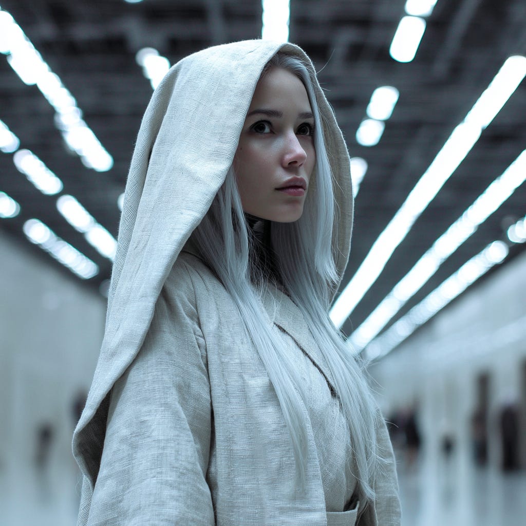 Ursula Heorot could not know that, in the much more crowded economy section of the same train, there was another person wearing a matching visor. They had the same slender build as the teenage kid, but they were draped in layers of charcoal and black, with an enveloping hood that cast shadows on the parts of their face the visor did not obscure.